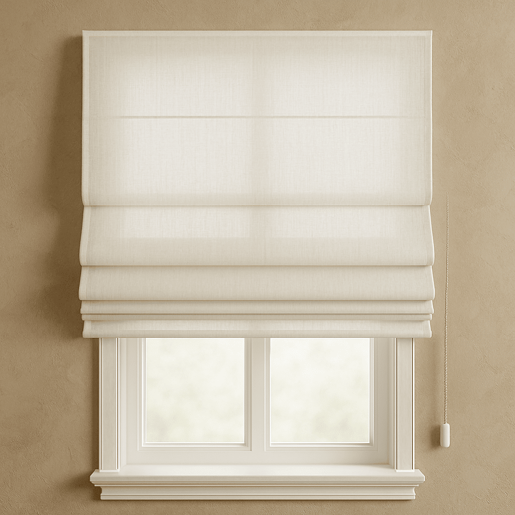 הוילון הרומאי מכיל יחידת בד אחת. בתוך הבד, אנו משחילים חוטים או מוטות דקים. אלו מאפשרים את מנגנון הקיפול האופייני והמסודר כלפי מעלה, ויוצרים "חבילות" בד אסתטיות. בנוסף, מראה זה מוסיף טאץ' ייחודי ורך לחלון.
